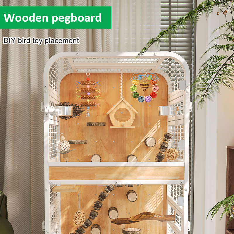 Modern Metal & Wood Bird Cage for Parrots, Elegant Home Style