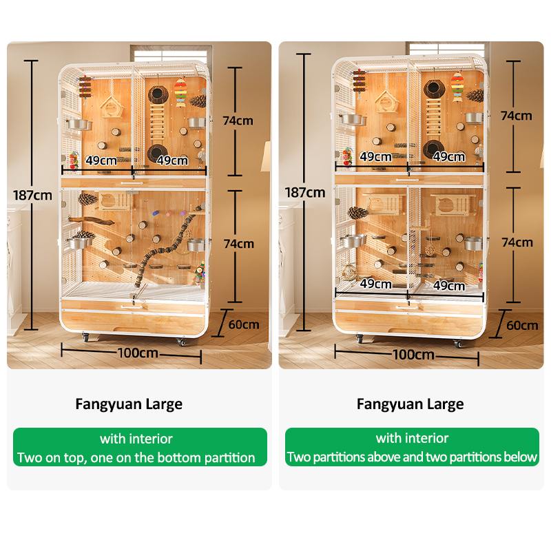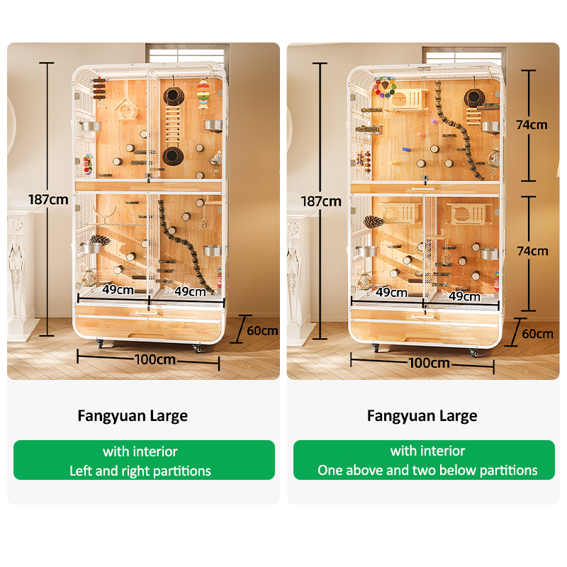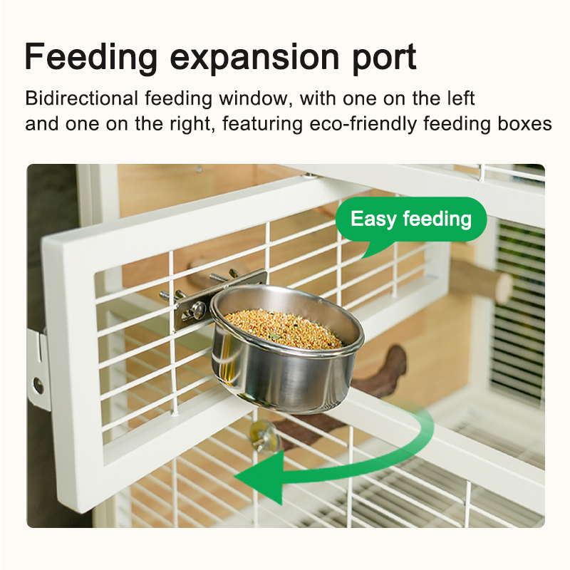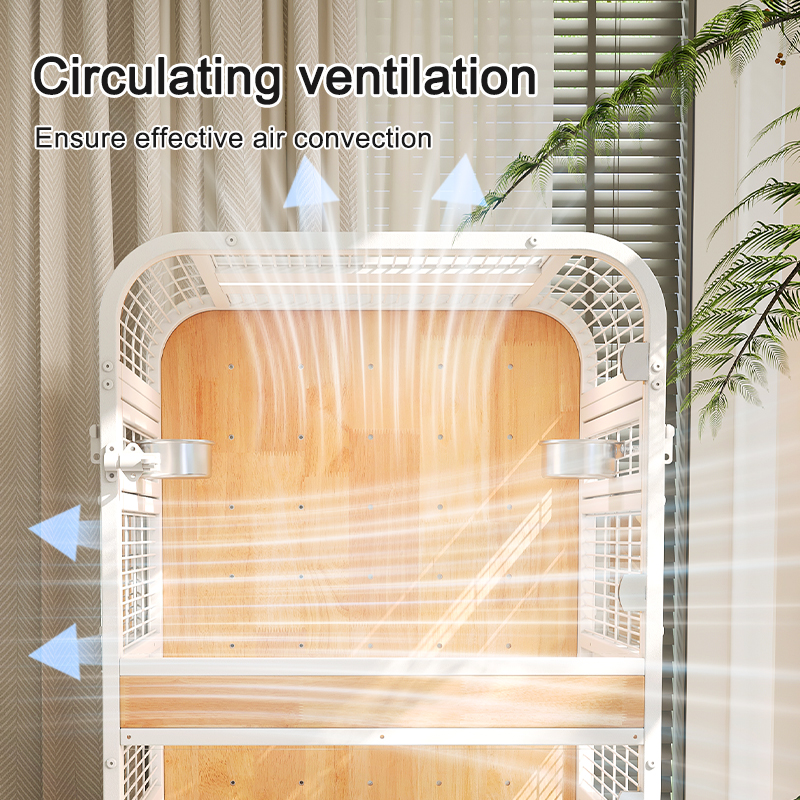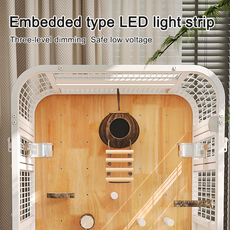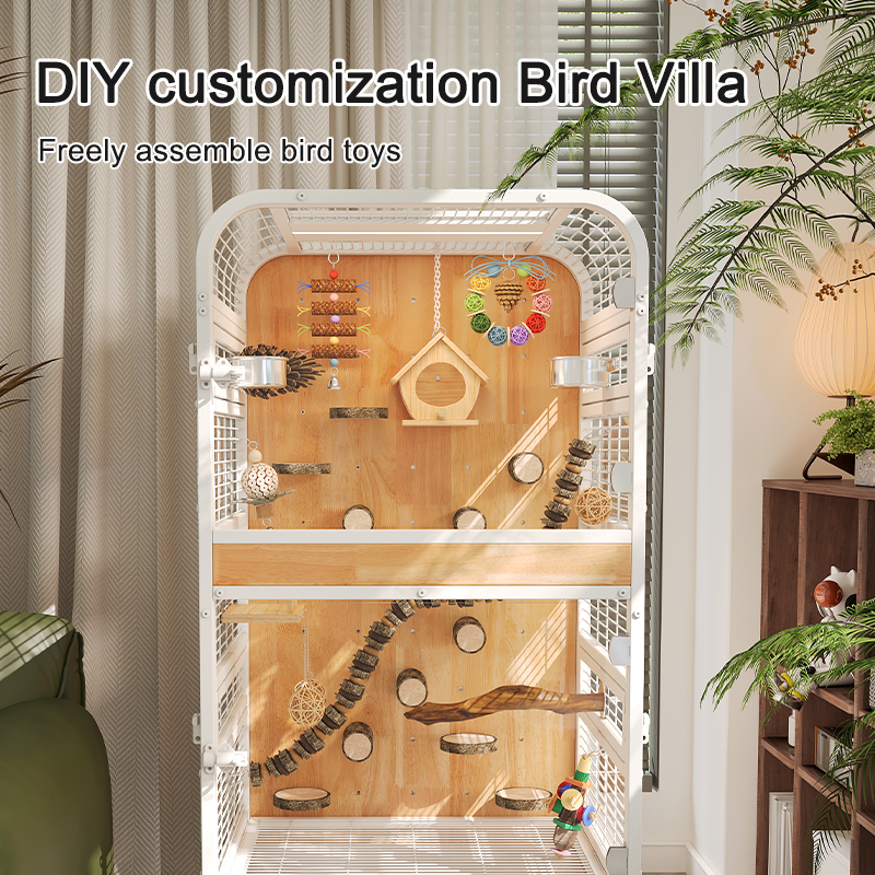 Luxury Indoor Bird Cage with Metal Frame and Solid Wood Base