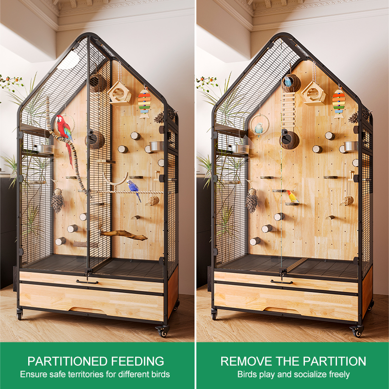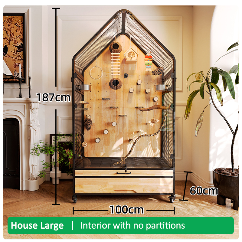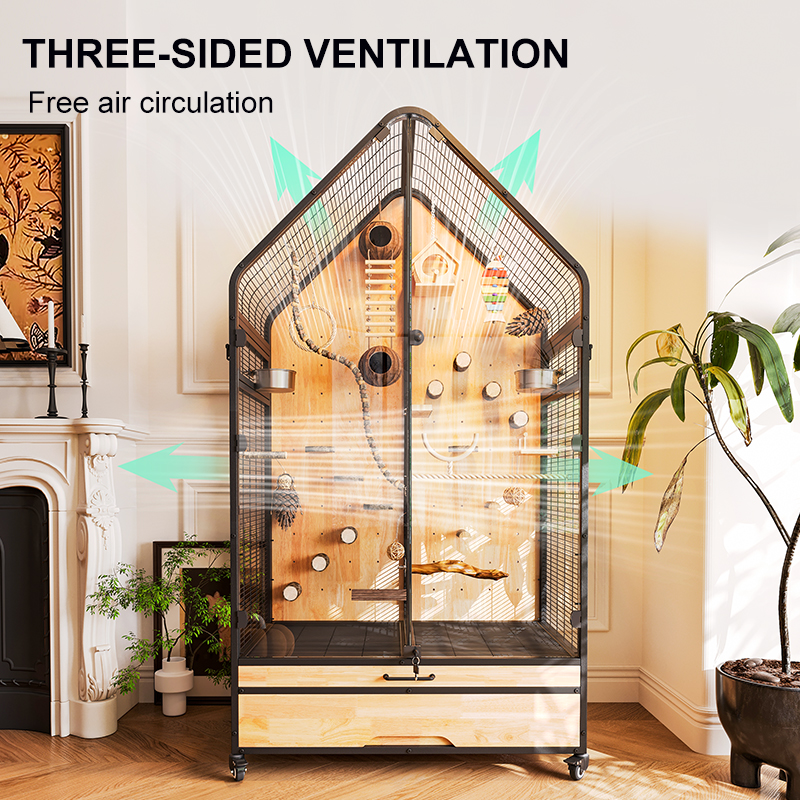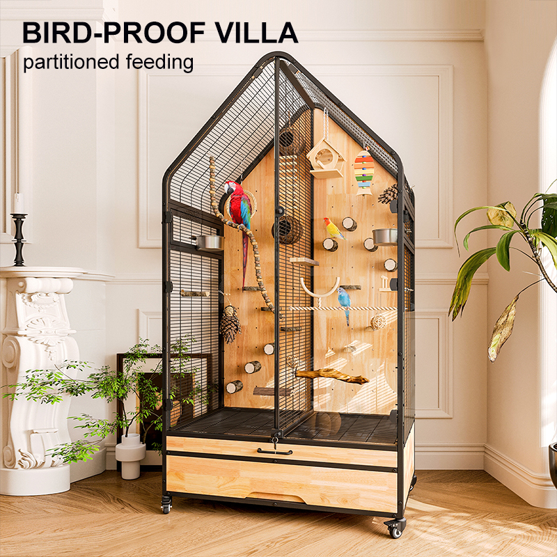 Premium Parrot Bird Cage Made of Metal and Natural Wood