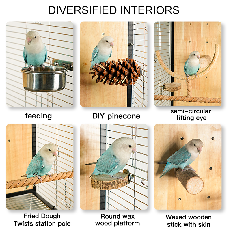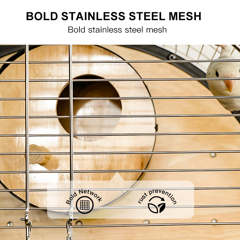 Premium Parrot Bird Cage Made of Metal and Natural Wood