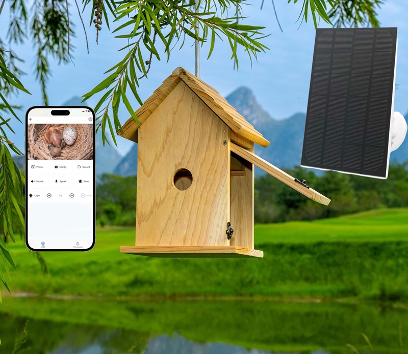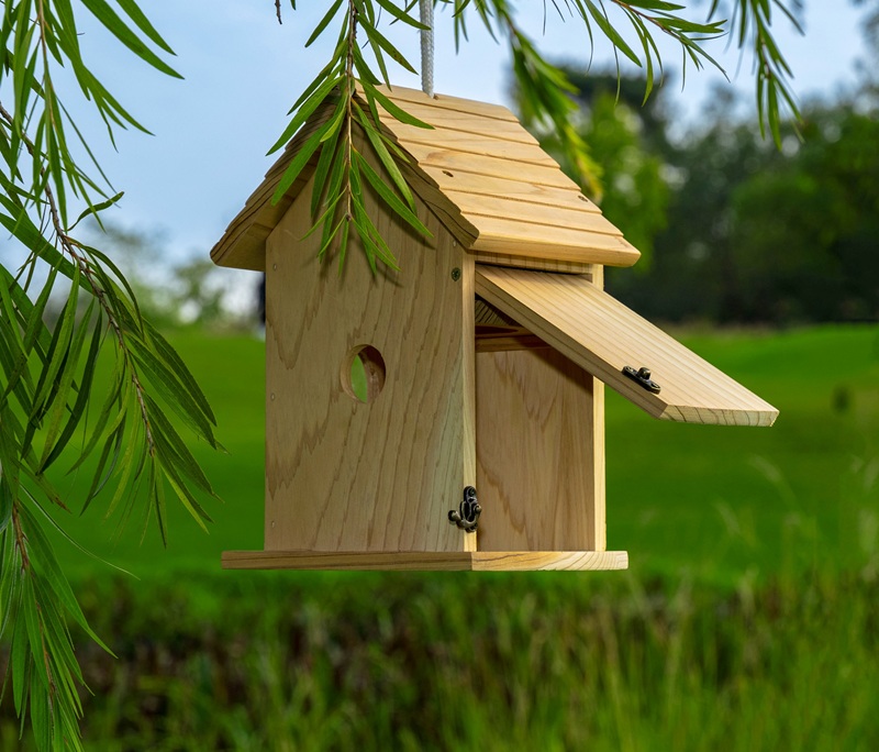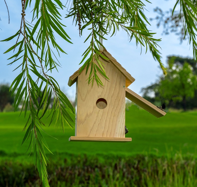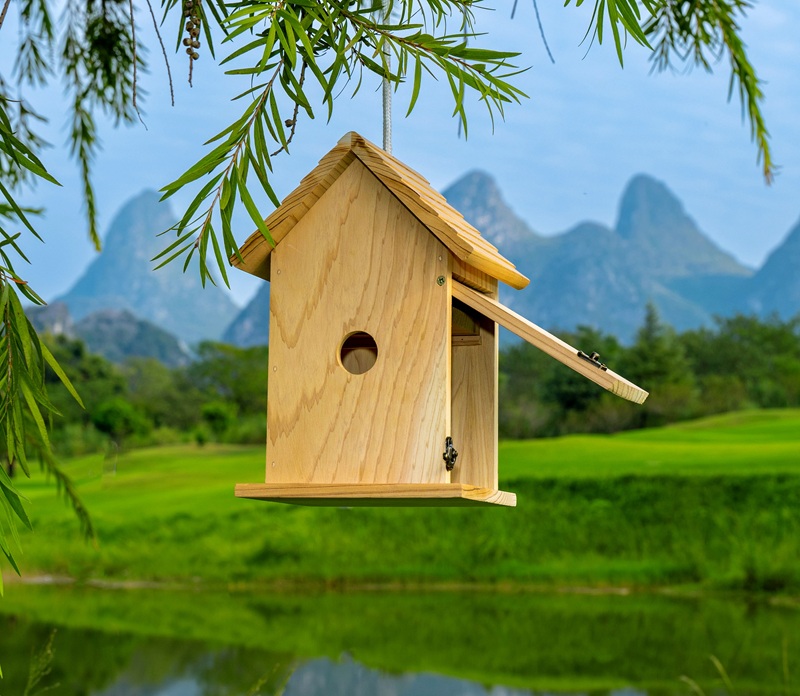 Crafted from natural wood, offering a safe and comfortable nesting space for small birds.