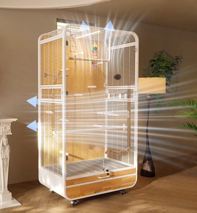 Beyond aesthetics, the design is guided by the real needs of birds. Spacious proportions, comfortable perching heights, and an open layout allow for natural movement, rest, and observation. Light and airflow move freely through the structure, creating an environment that feels calm, open, and instinctively comfortable.