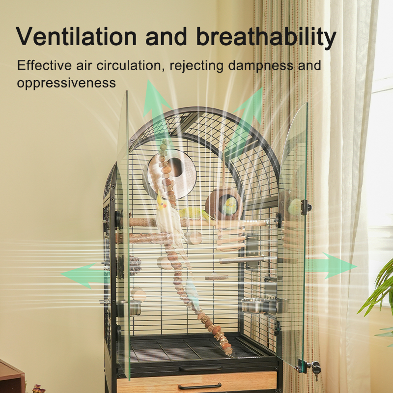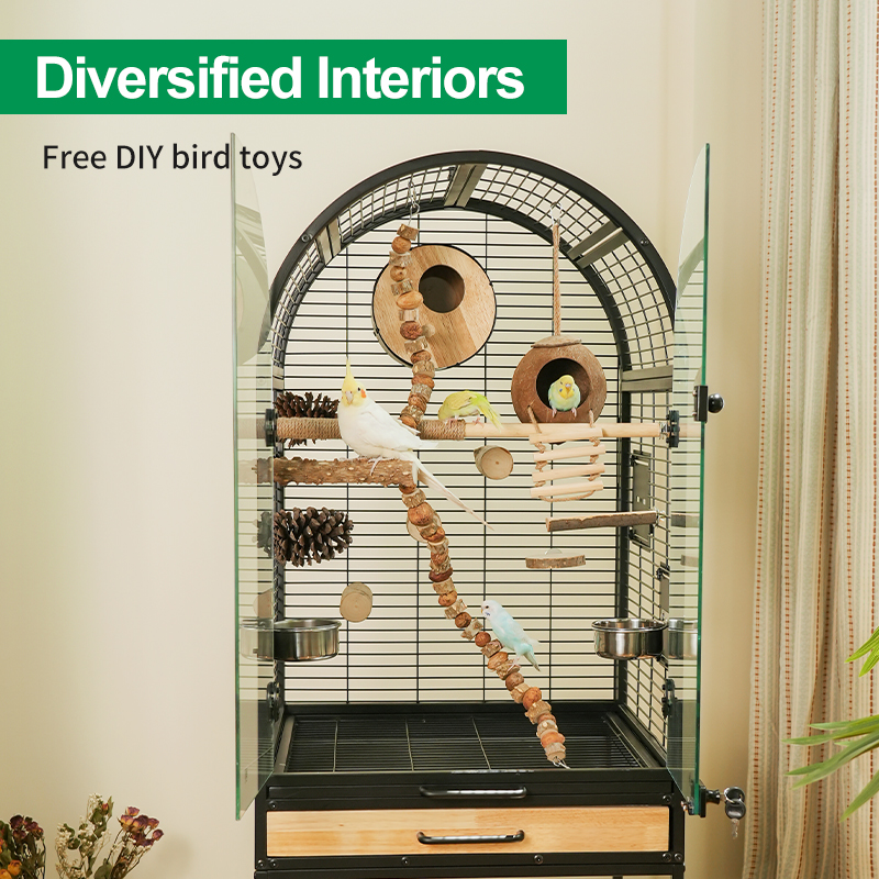 High-End Metal & Wood Bird Cage for Parrots and Pet Birds