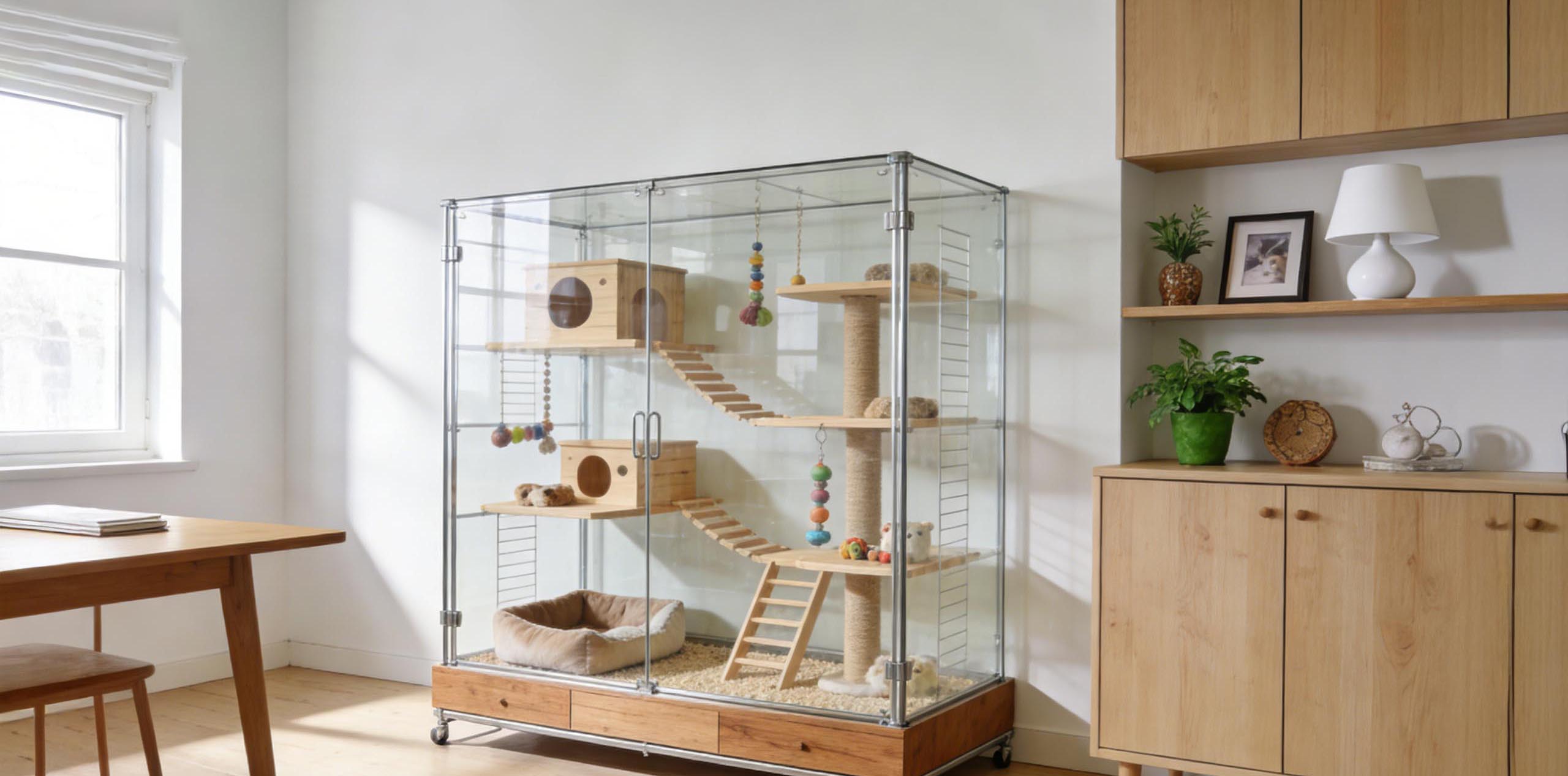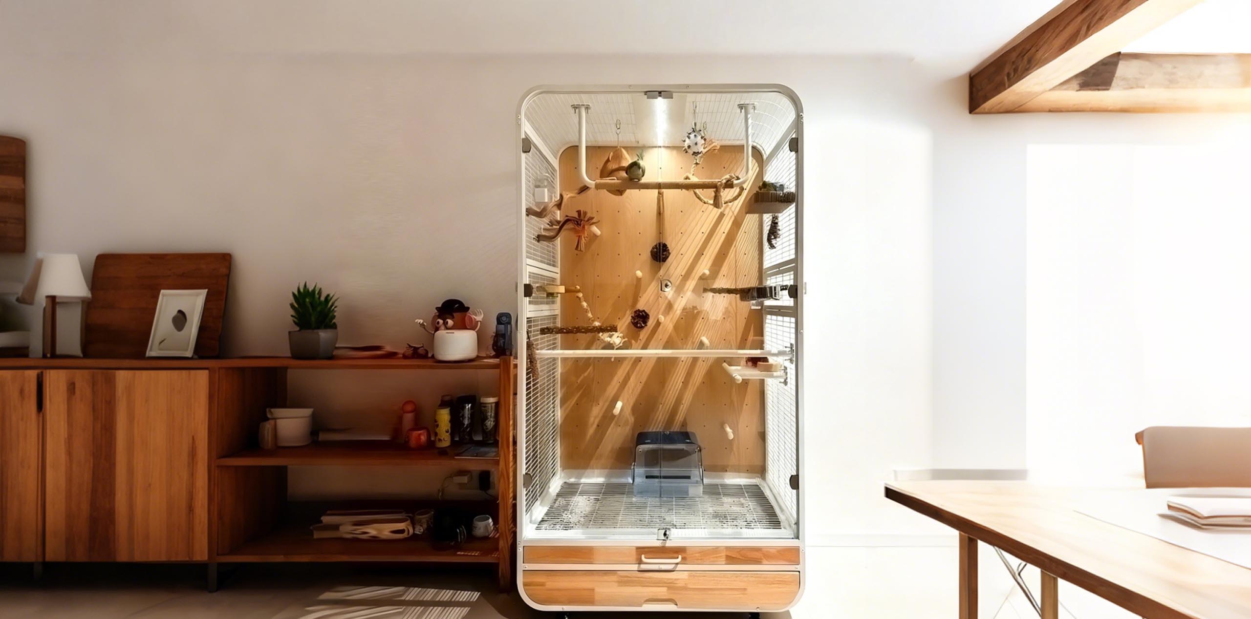 Luxury Indoor Bird Cage with Metal Frame and Solid Wood Base