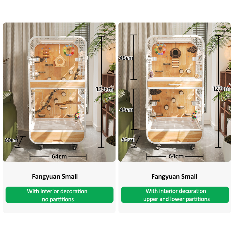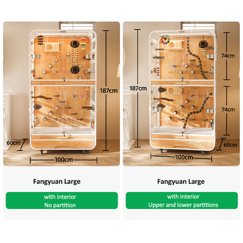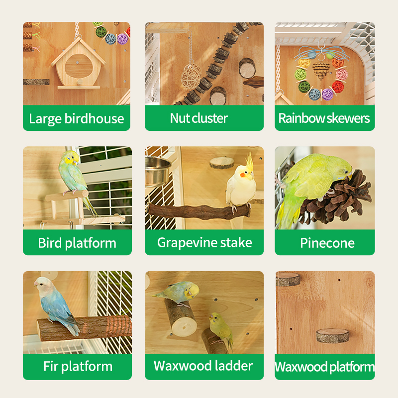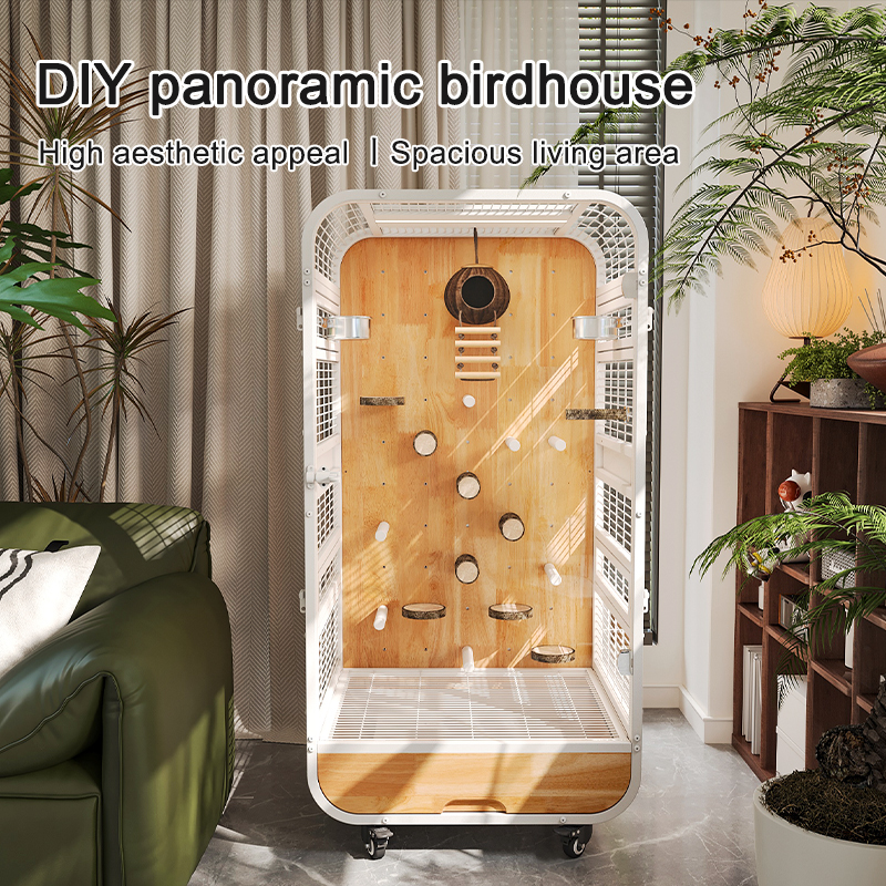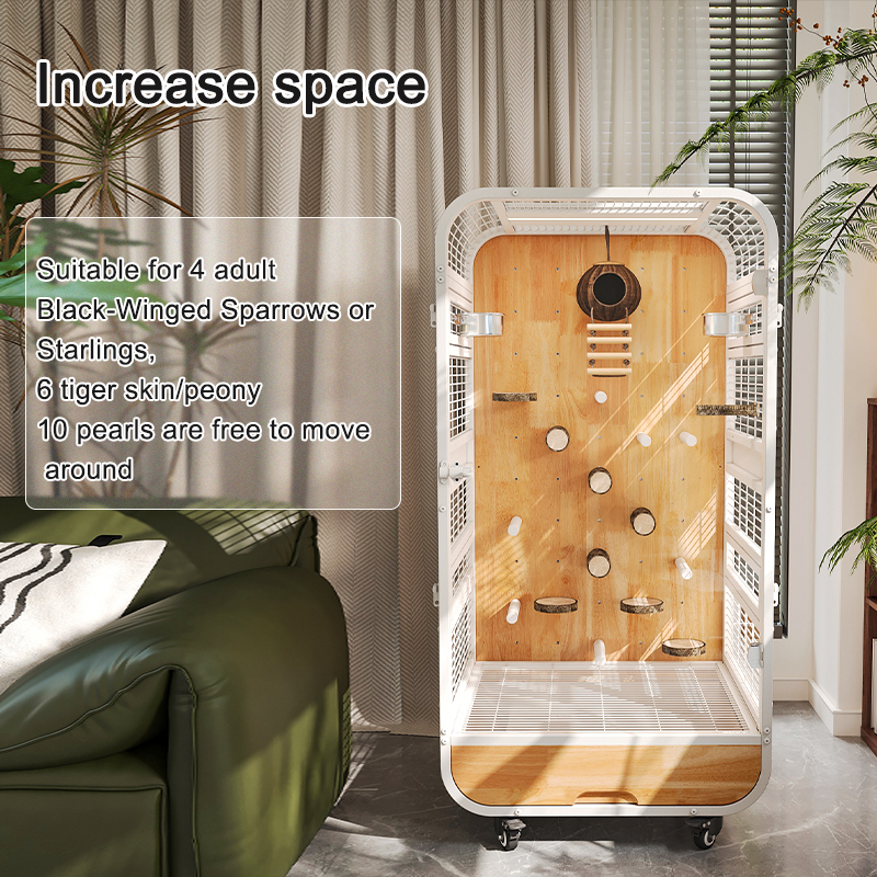Luxury Indoor Bird Cage with Metal Frame and Solid Wood Base