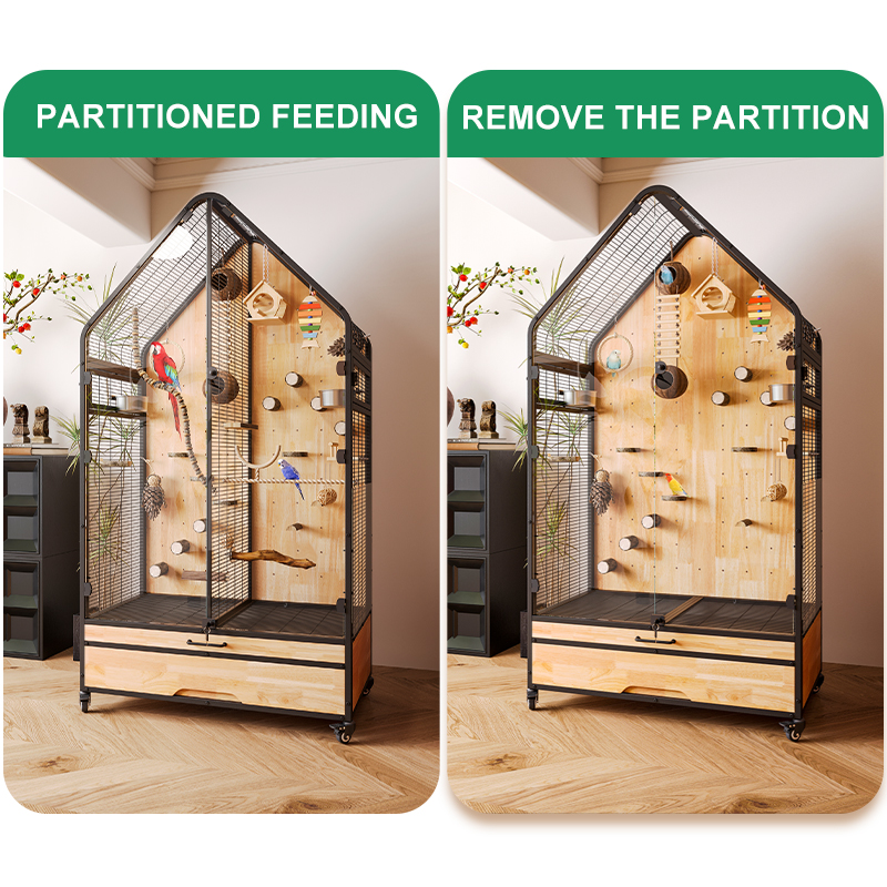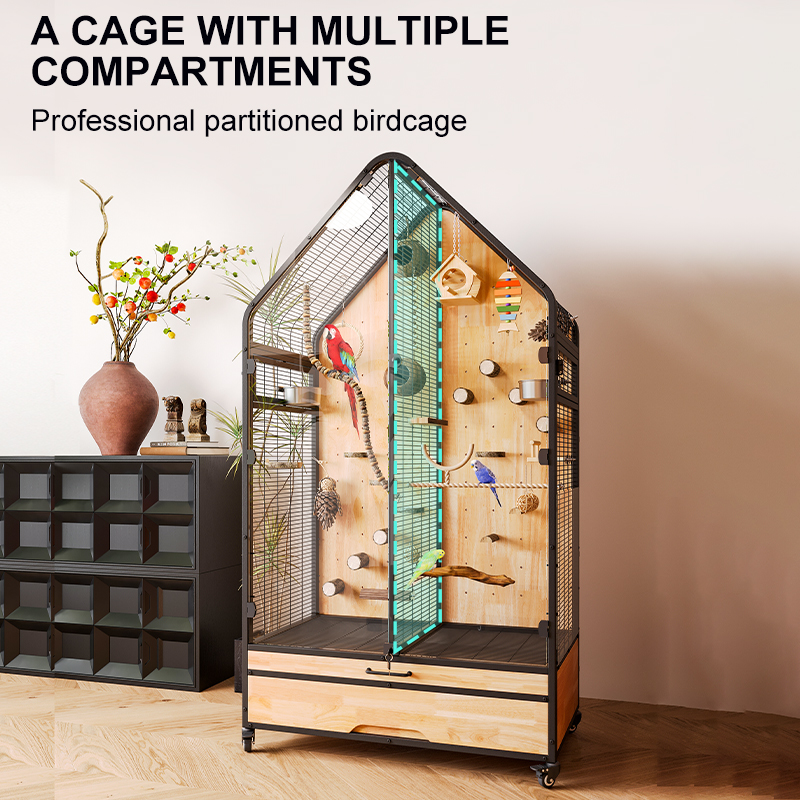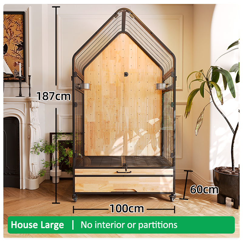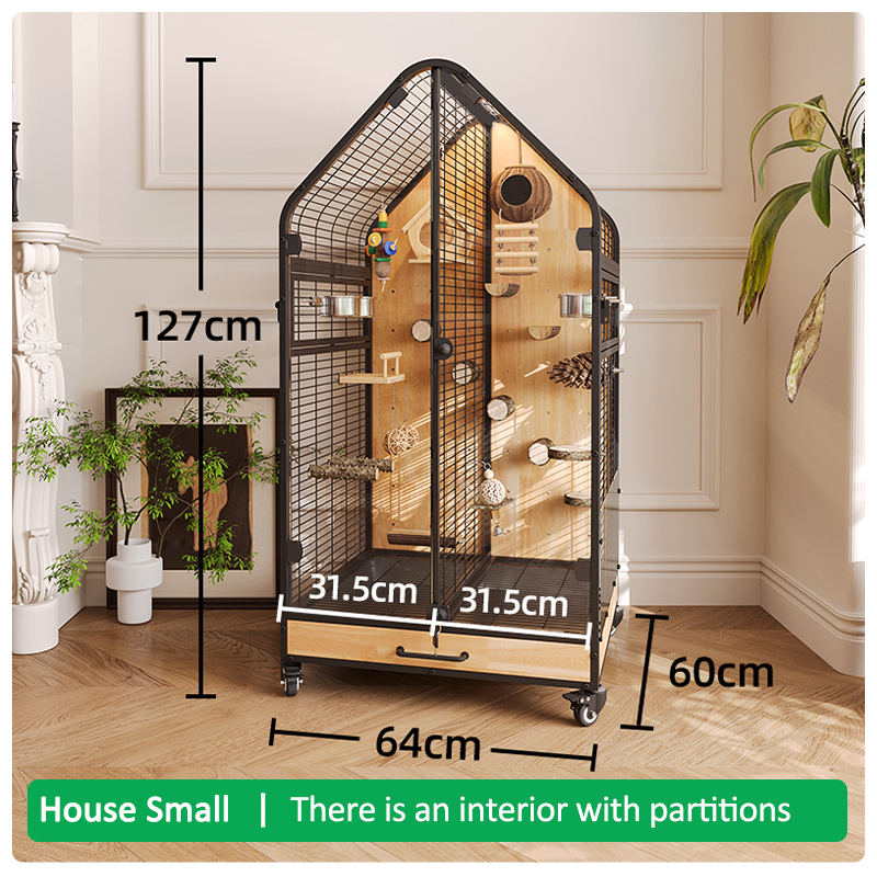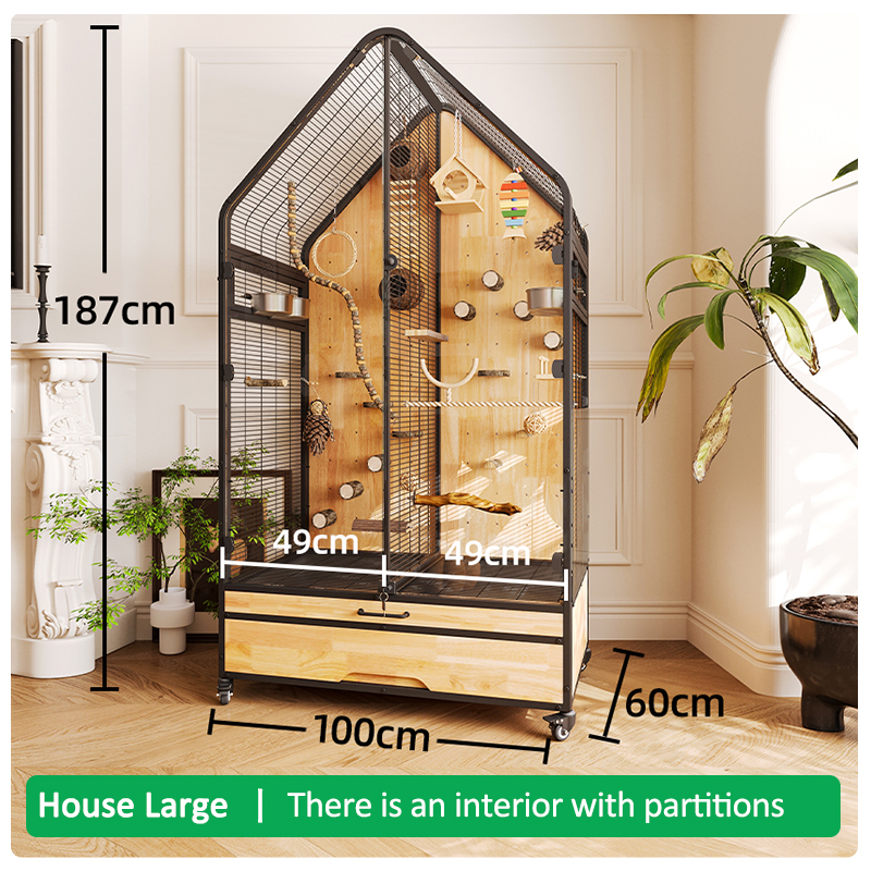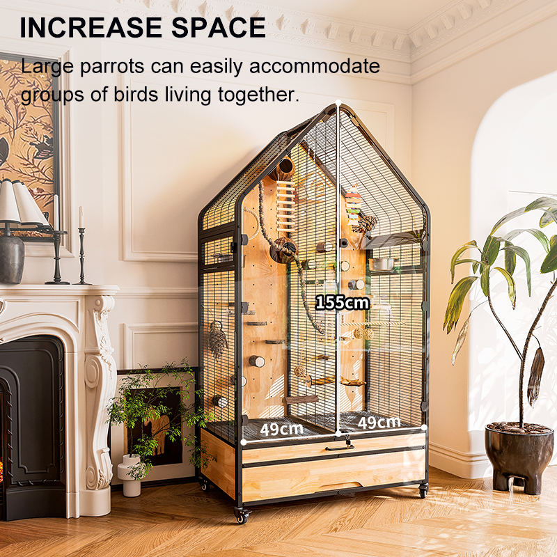 Premium Parrot Bird Cage Made of Metal and Natural Wood