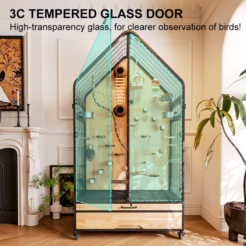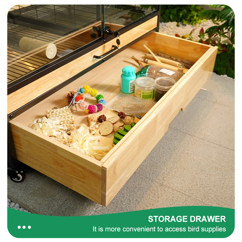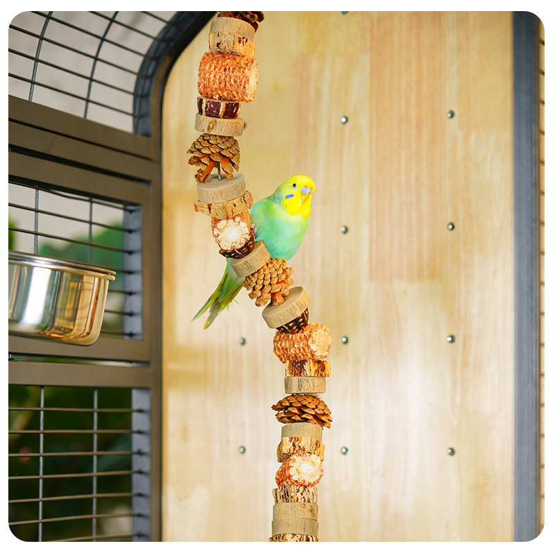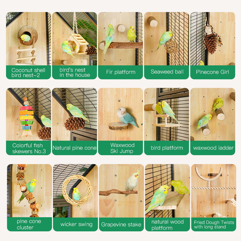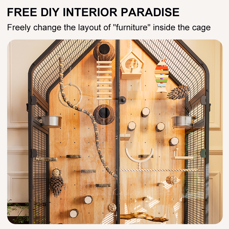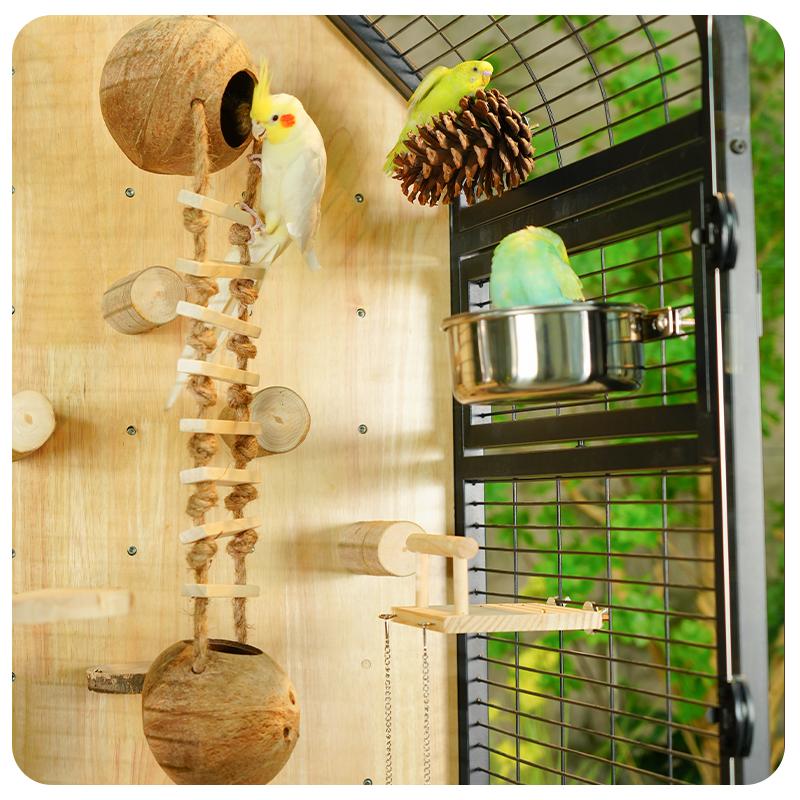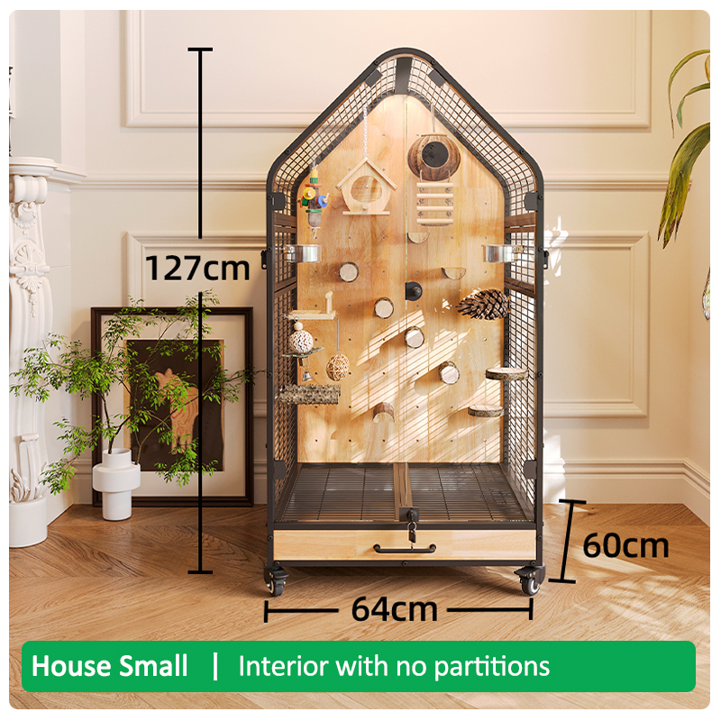 Premium Parrot Bird Cage Made of Metal and Natural Wood