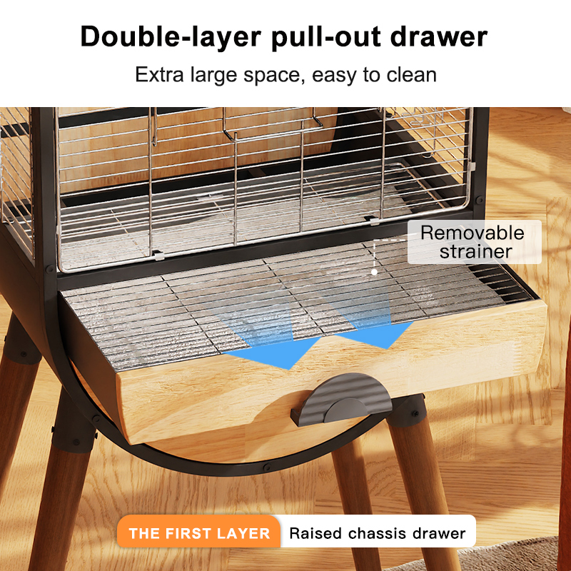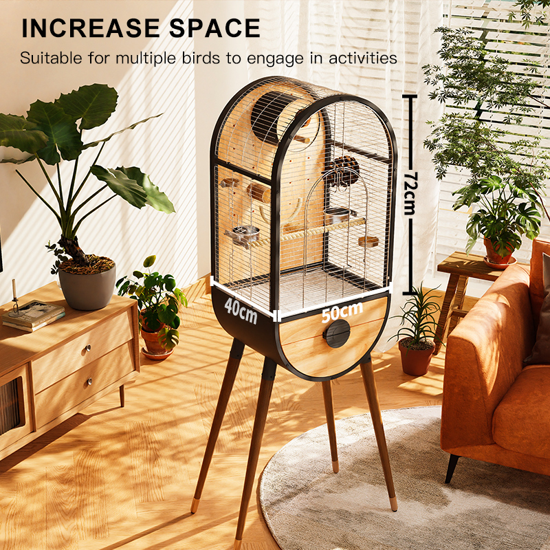 Premium Parrot Bird Cage Made of Metal and Natural Wood