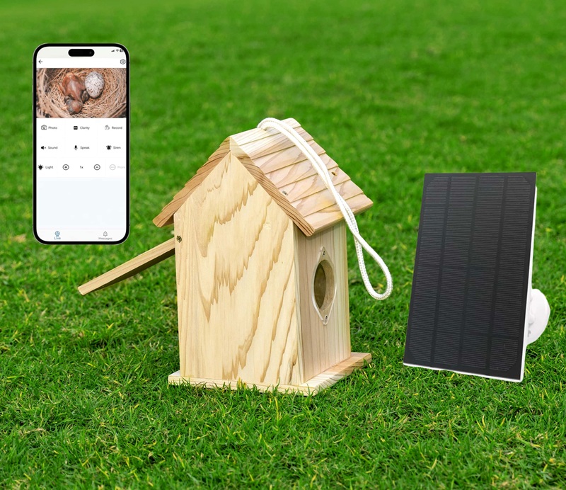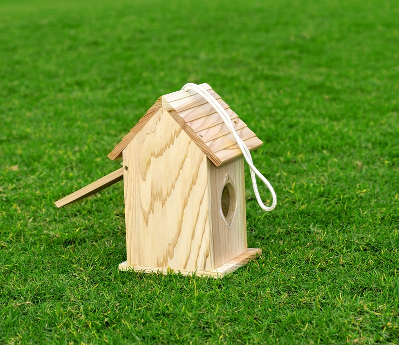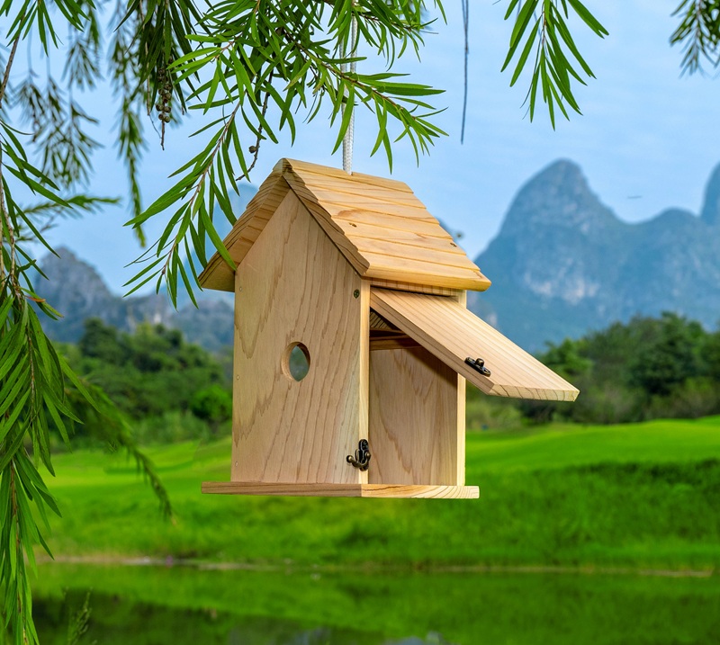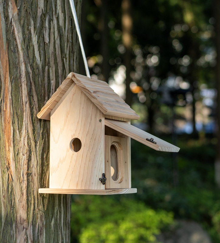 Crafted from natural wood, offering a safe and comfortable nesting space for small birds.