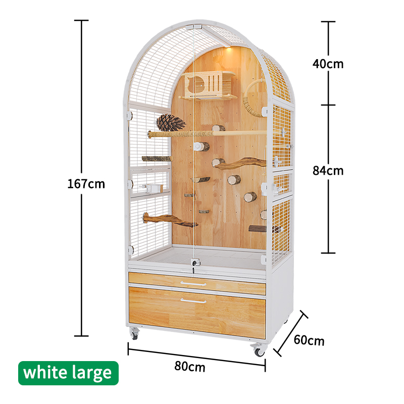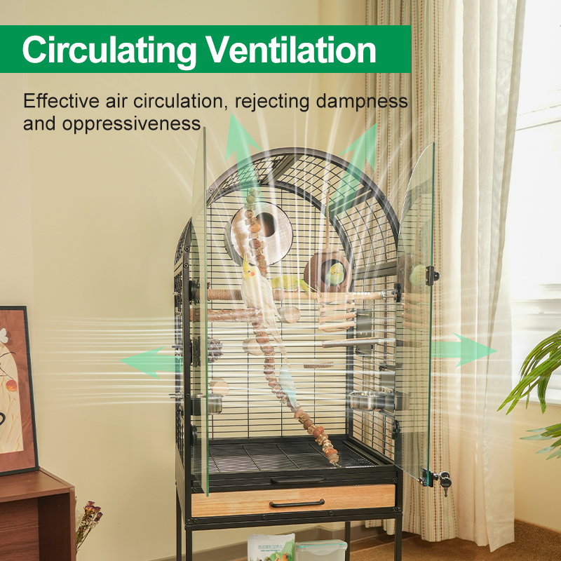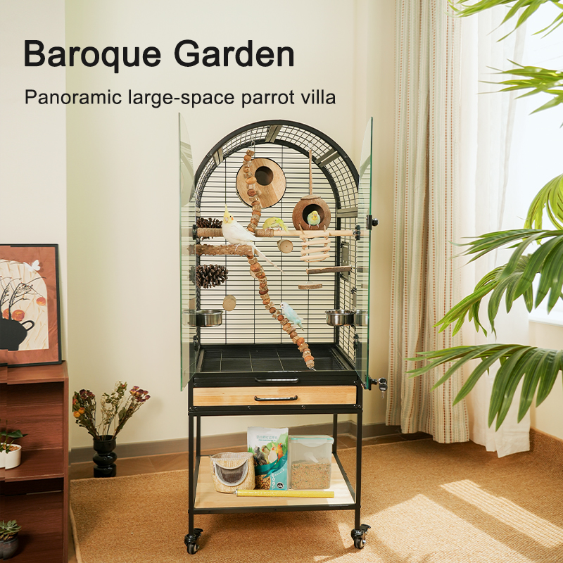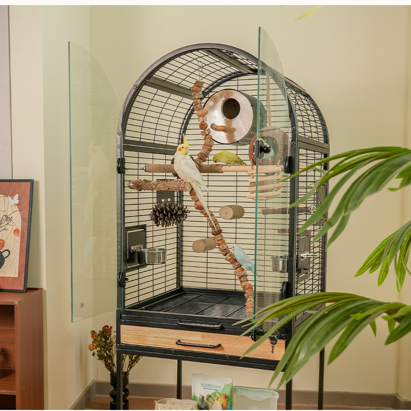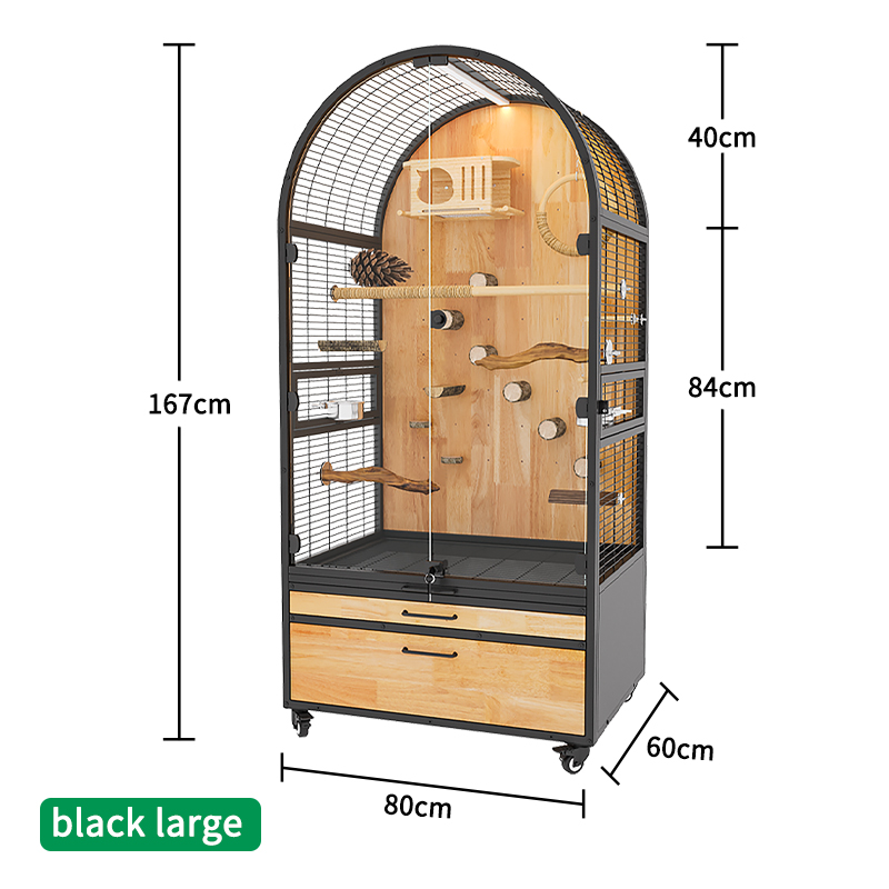 High-End Metal & Wood Bird Cage for Parrots and Pet Birds