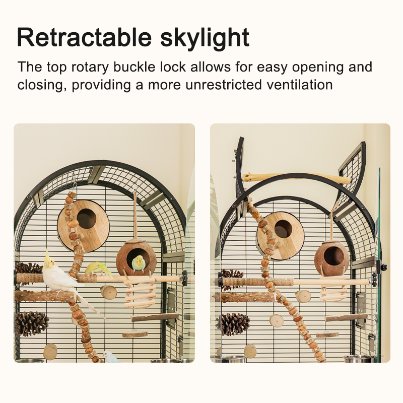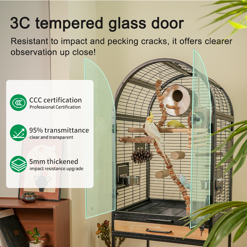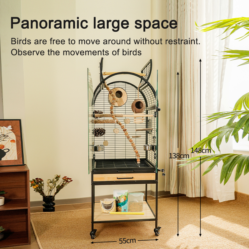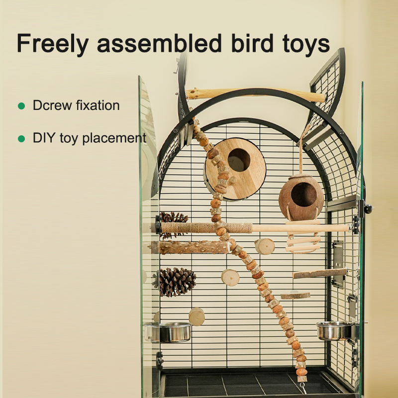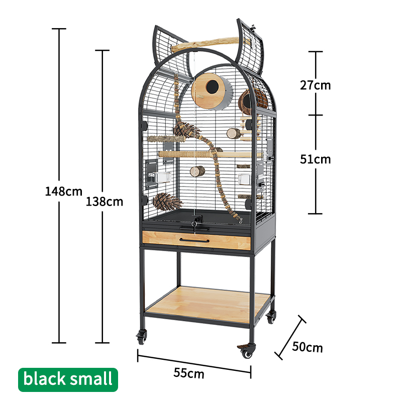 High-End Metal & Wood Bird Cage for Parrots and Pet Birds